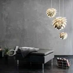 Kultaa arkipäiväsi tämän ylellisen Silvia-valaisimen avulla. Silvia tulee Umage / Vitalta ja se on valmistettu harjatun messingin värisestä muovista. Silvia on vajostin, jota voi ripustussarjan tai sopivan statiivin avulla käyttää niin kattovalaisimena kuin pöytä- tai lattiavalaisimenakin. Silvia toimitetaan litteässä pakkauksessa ja se on helppo koota mukana seuraavien ohjeiden avulla. Valitse eri kokoja.