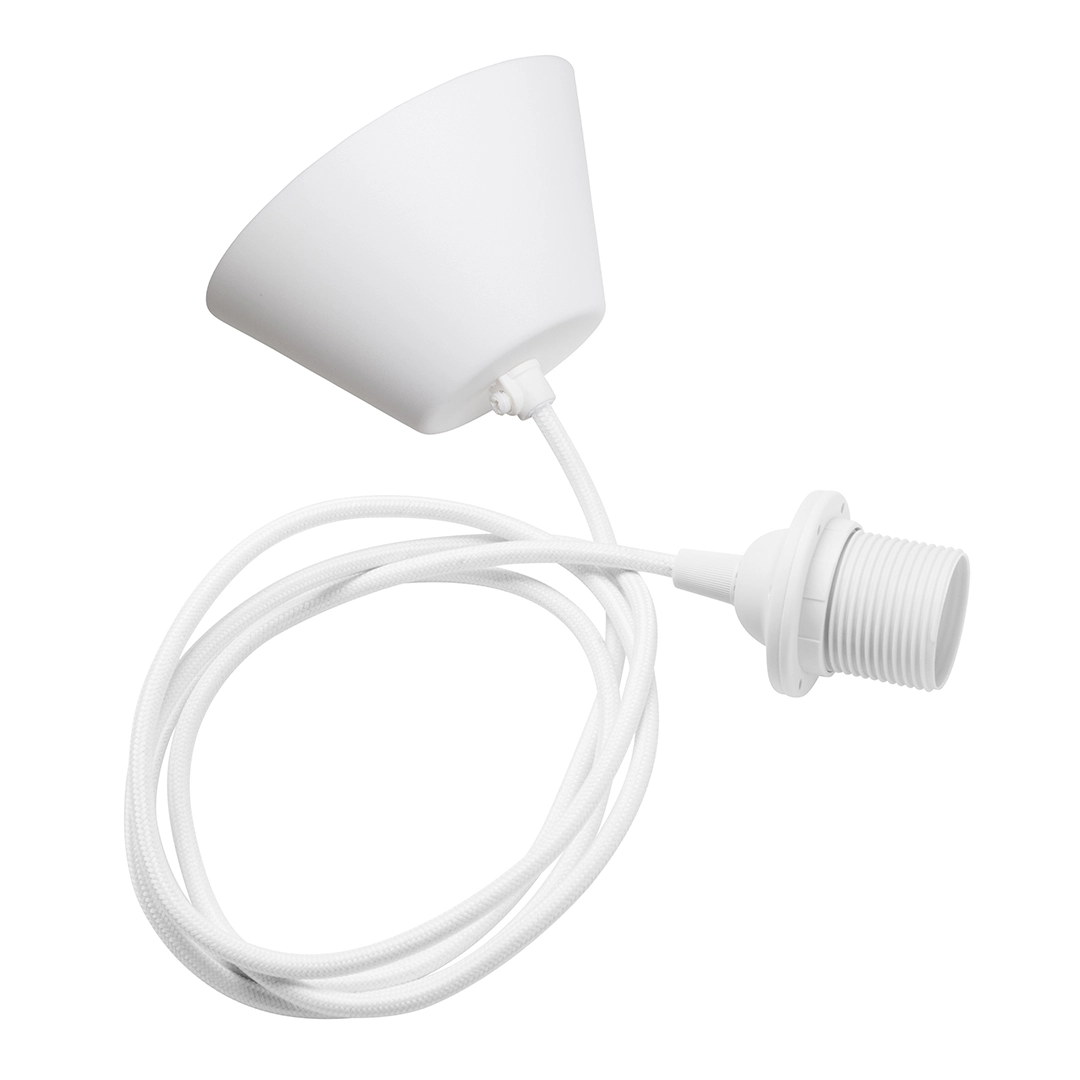 Täydennä valaisimesi tai varjostimesi Watt & Veken ripustussarjalla. Se koostuu tekstiilipäällysteisestä johdosta, kannasta ja kattokupista. Saatavana eri väreissä.